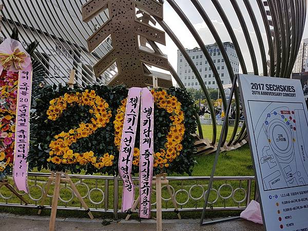 微博瘋傳志溶送的祝賀花籃,但是我都沒看到,在看跳舞的時候偶然發現就在妙漢往下走最旁邊就是了,
