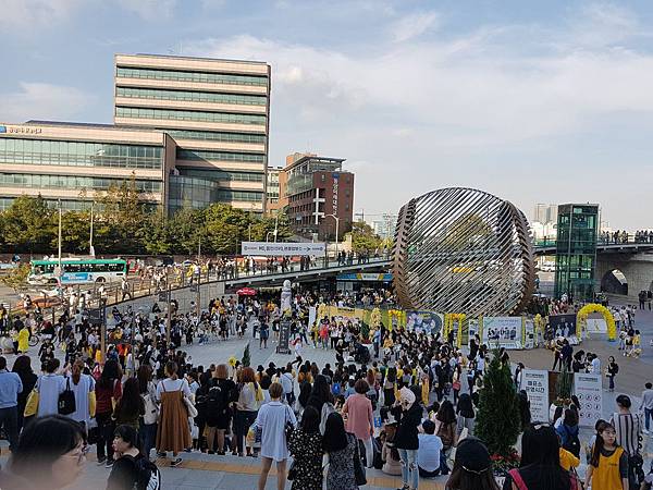掃興的是保全還是工作人員之類的,一直叫我們不要坐在階梯上,一直趕人,大概也是時間快到了,催我們進場吧