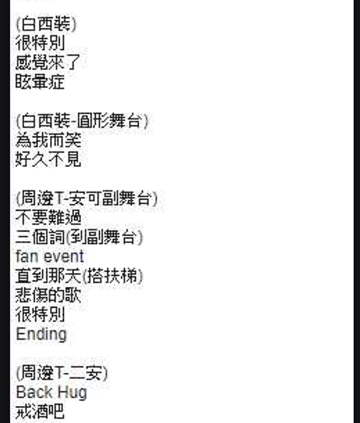 令我意外的是新歌唱了不少首,已經記不起幾首了,網路上有人說唱了7首,非常有誠意丫
